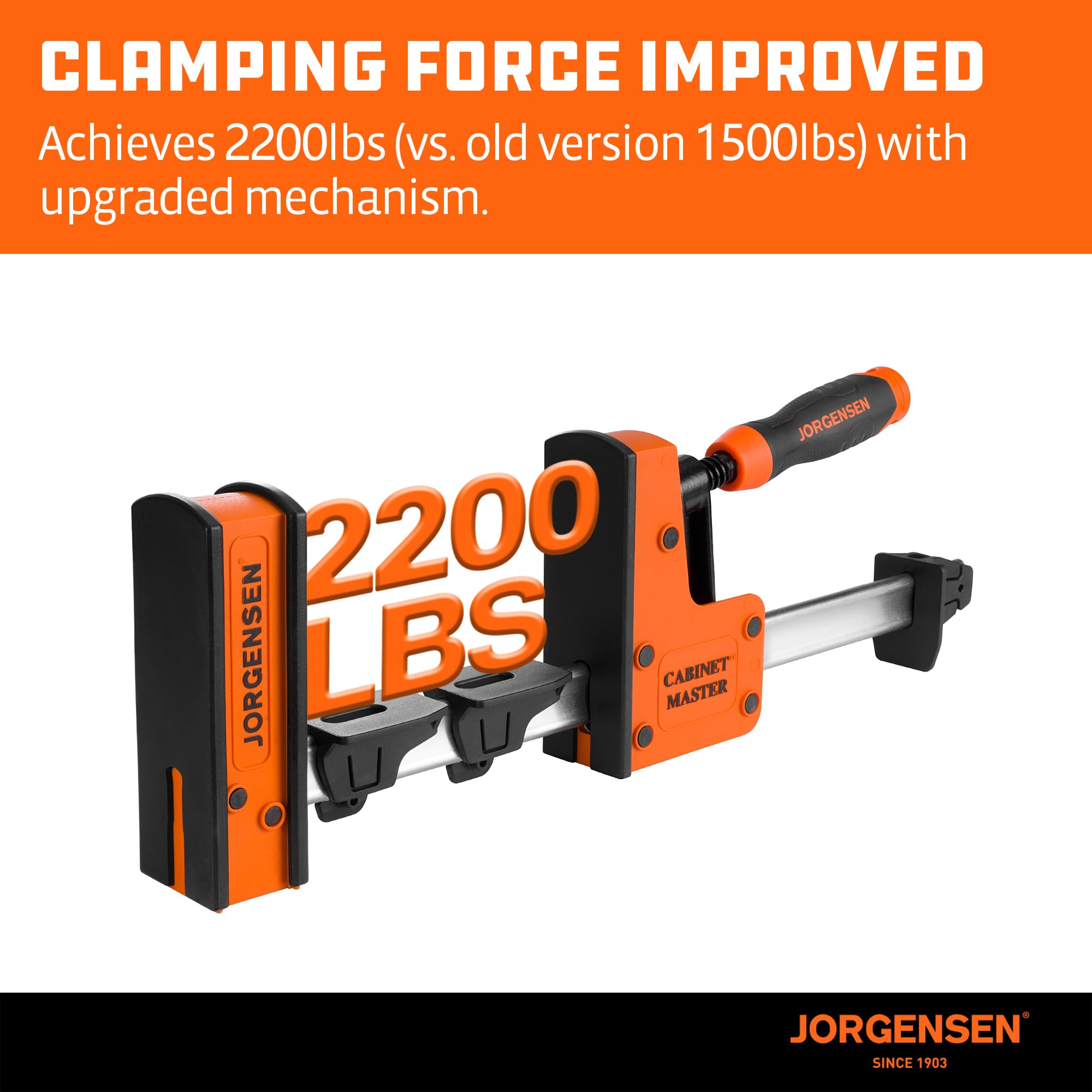 - POWERFUL CLAMPING FORCE: The upgraded steel screw thread delivers up to 2,200 lbs of consistent clamping force, keeping workpieces secure and preventing warping during precise glue-ups, cabinet assembly, and other woodworking projects.