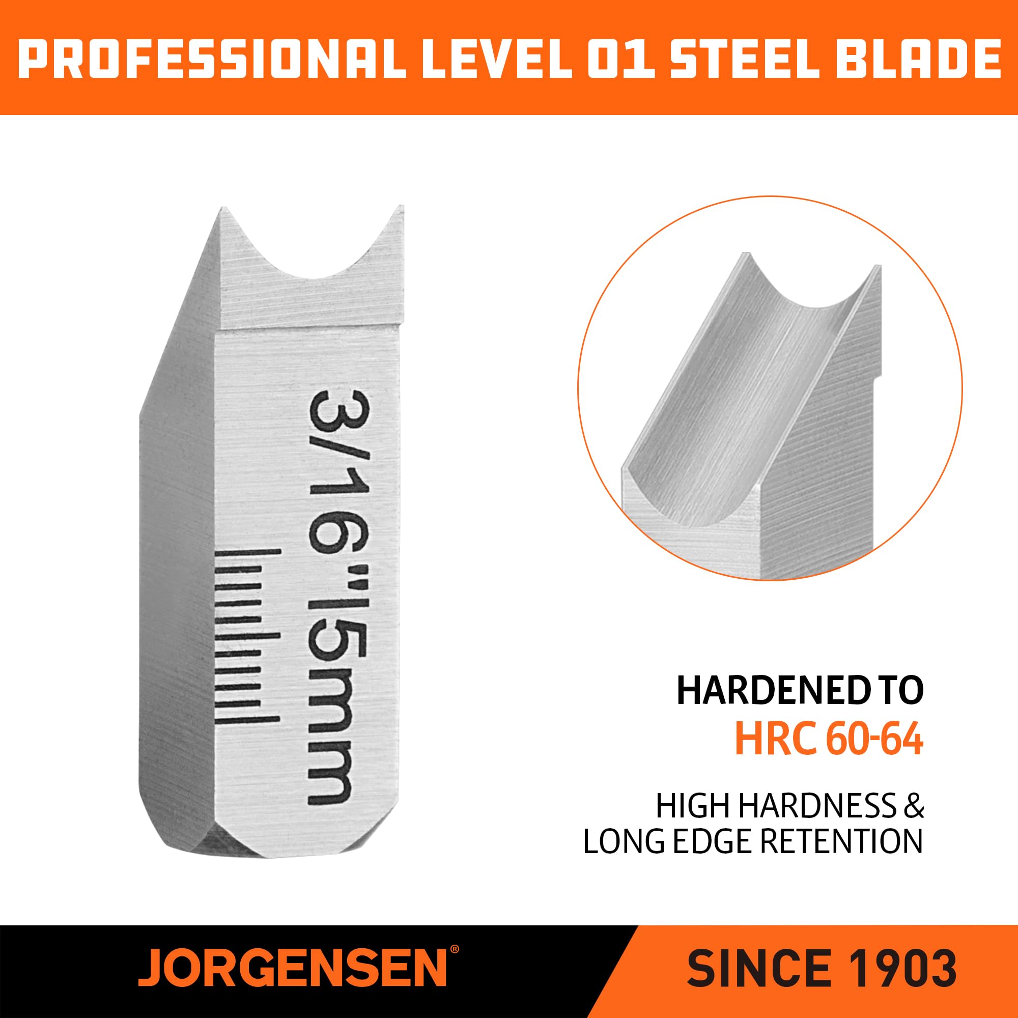 JORGENSEN 3-Piece Chamfer Plane Blades(1/8", 3/16", 1/4") - for Edge Corner Plane, Replacement Cutter Heads for Edge Trimming of Wood, Edge Corner Flattening