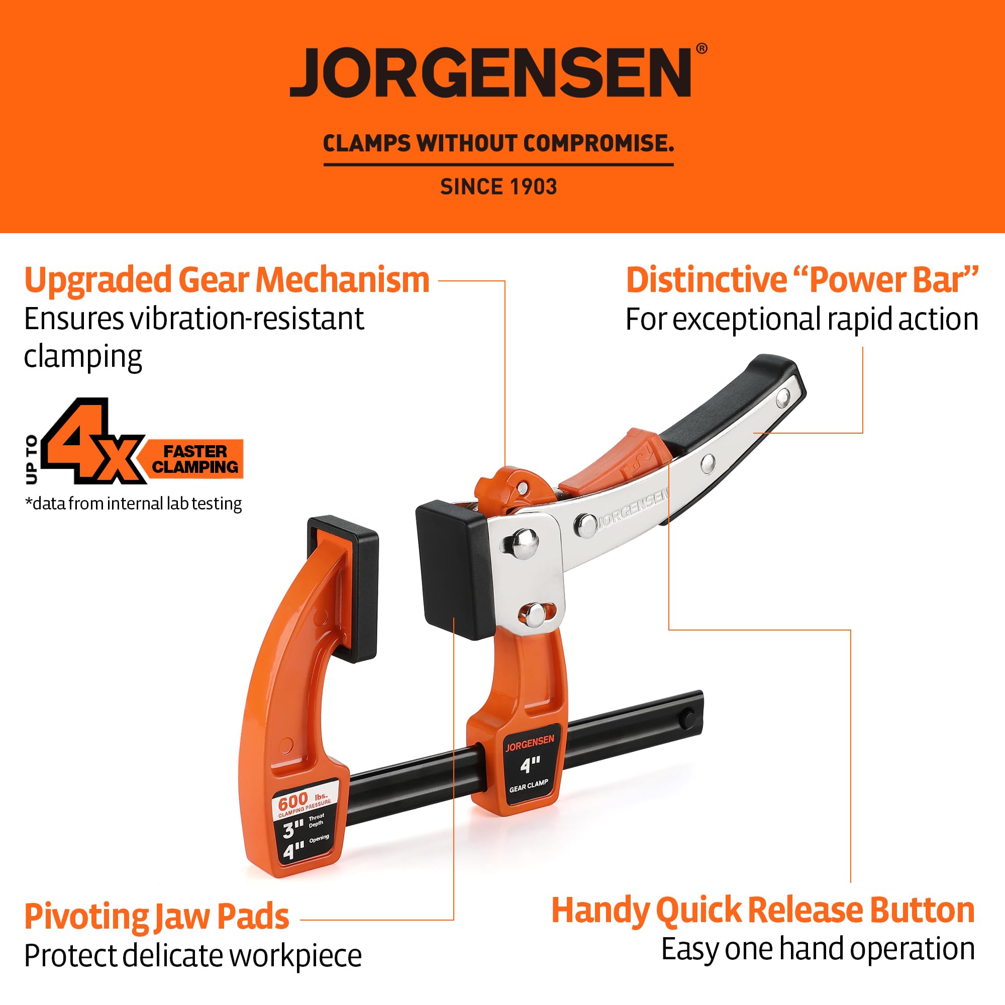 Jorgensen 4-inch Bar Clamp Set, Ratcheting Bar Clamp for Woodworking, Quick Release Gear Clamp with 600 lbs Load Limit - 2 Pack—